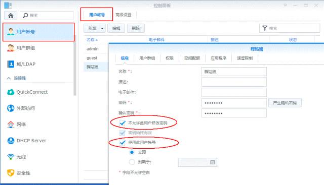 ÈôÊÇÊÇһ̨¶àÓû§¹²ÓõÄNAS£¬£¬£¬£¬£¬£¬£¬£¬³ýÁËÓû§È¨ÏÞµÄÉ趨£¬£¬£¬£¬£¬£¬£¬£¬»¹¿ÉÒÔÈçÏÂͼÉèÖÃÓû§¸ü¸ÄÃÜÂëµÄȨÏÞ£¬£¬£¬£¬£¬£¬£¬£¬»¹ÄÜÉ趨´ËÕ˺ŵÄʹÓÃÏÞÆÚ¡£¡£¡£¡£¡£¡£¡£¡£